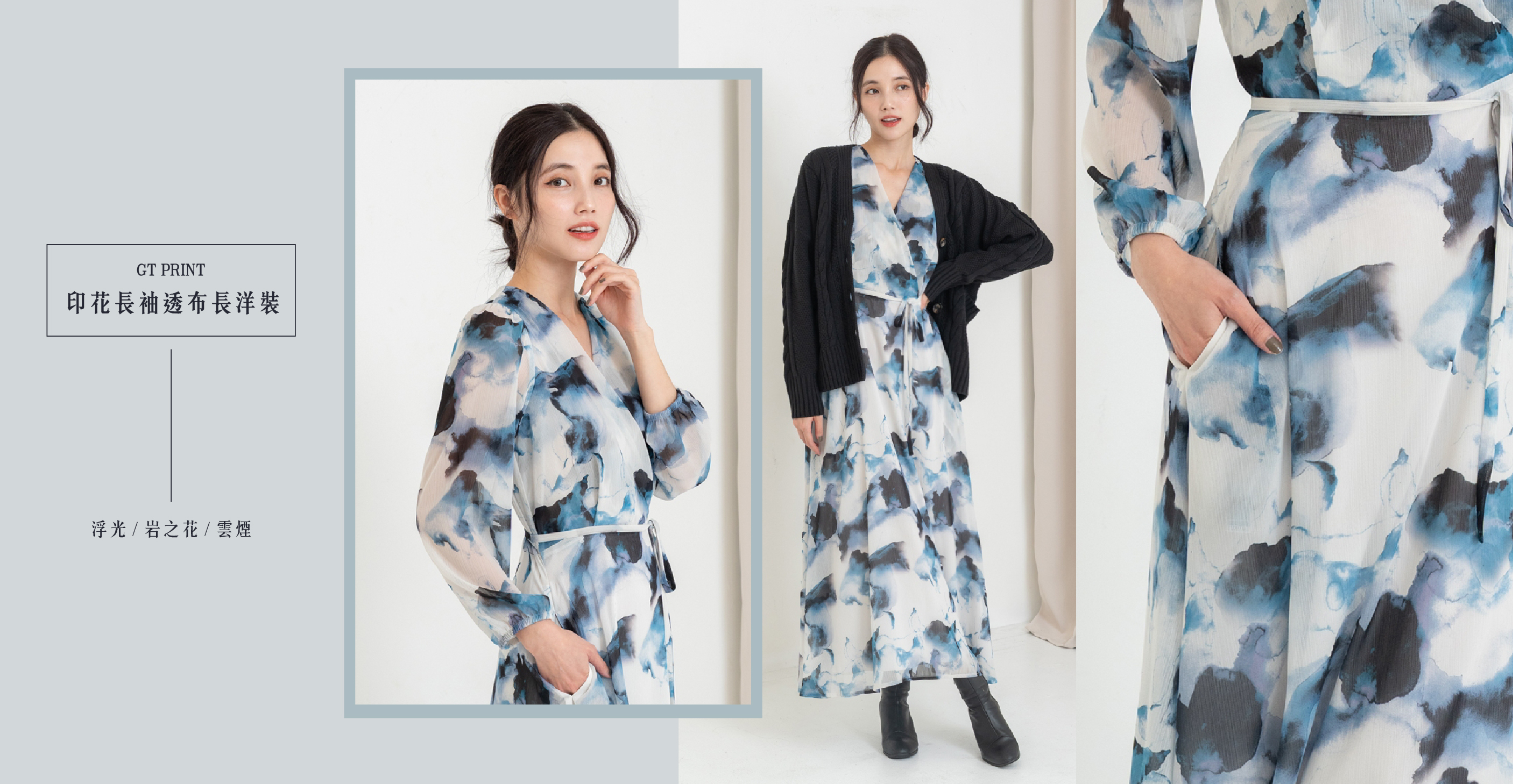 GT Print 印花長袖透布長洋裝