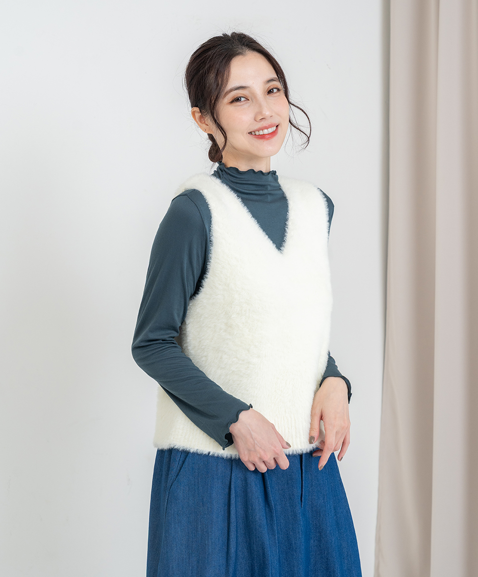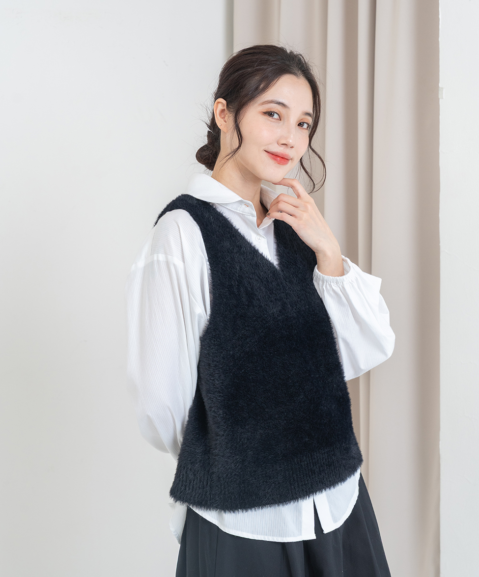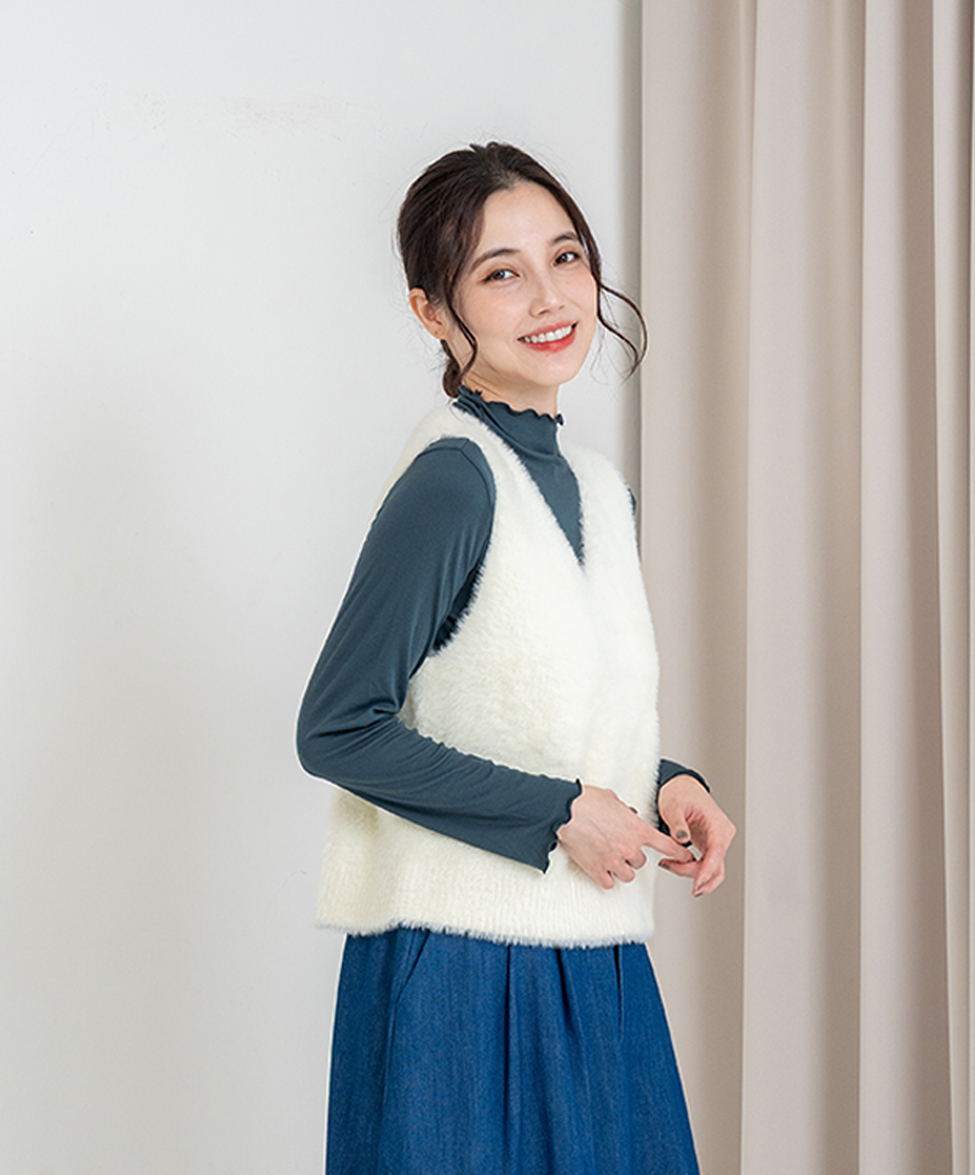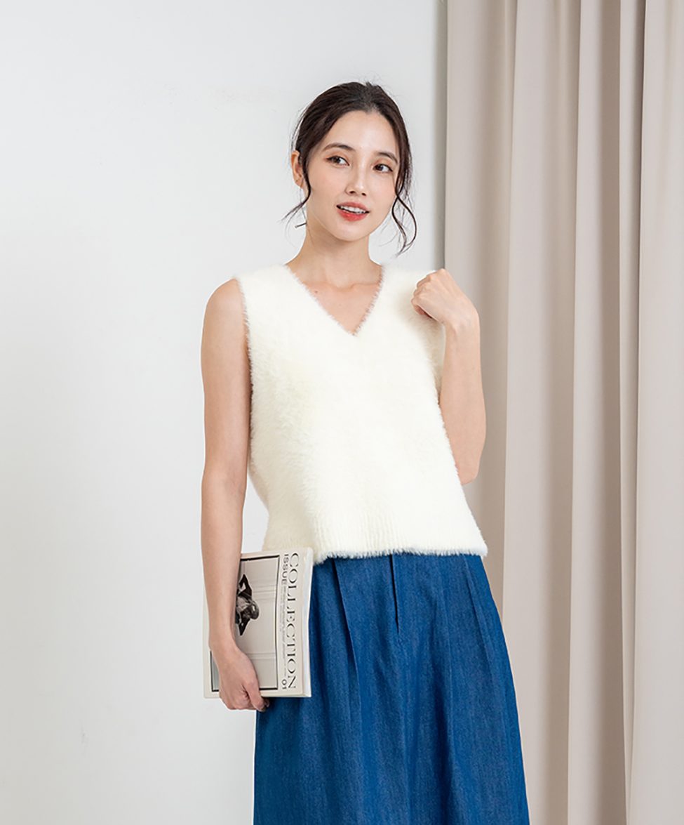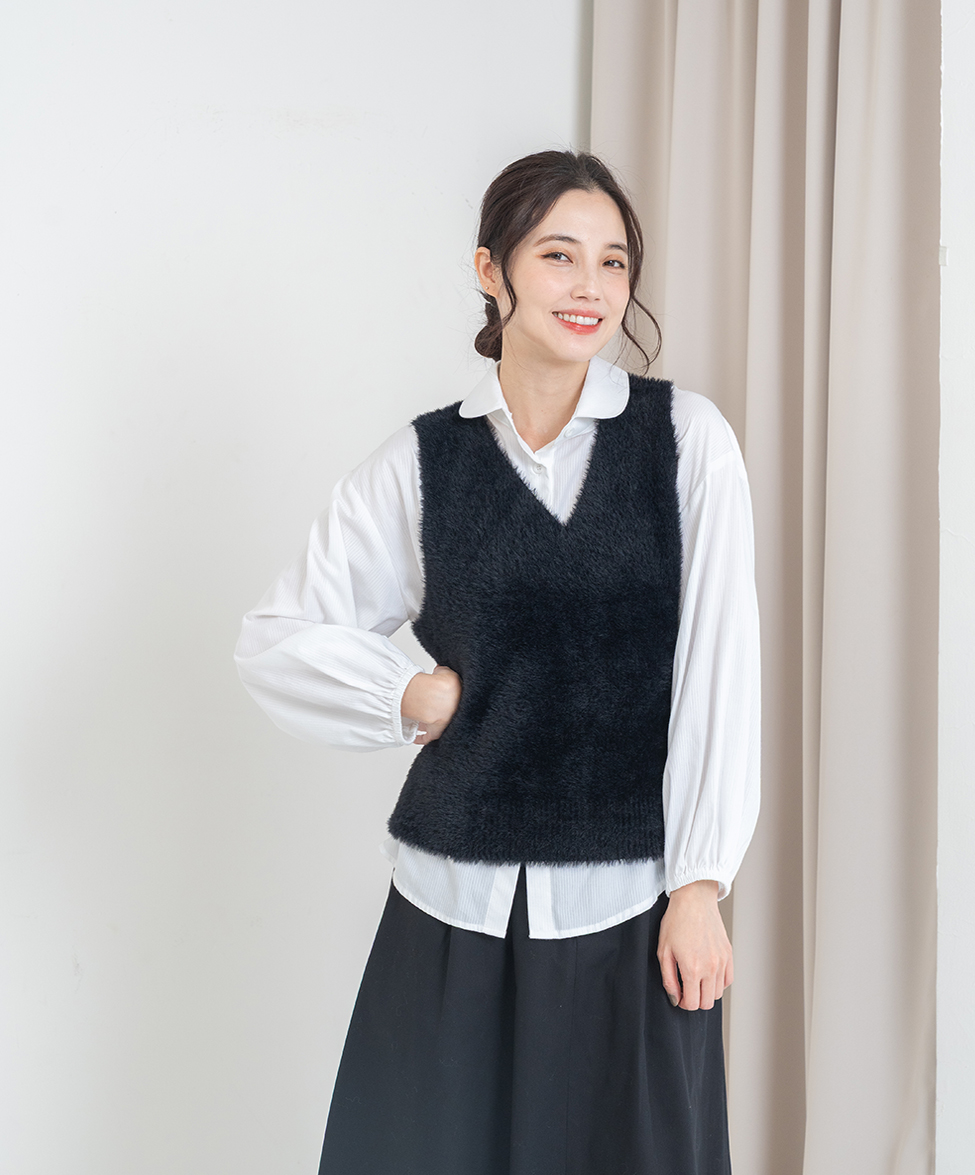 【版型說明】觸感極舒服的仿貂毛材質,華麗中帶點可愛,毛絨絨的溫柔手感,舒適好穿。V領修飾臉型,搭襯衫或高領內搭都好看。
