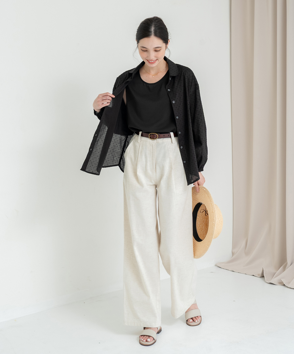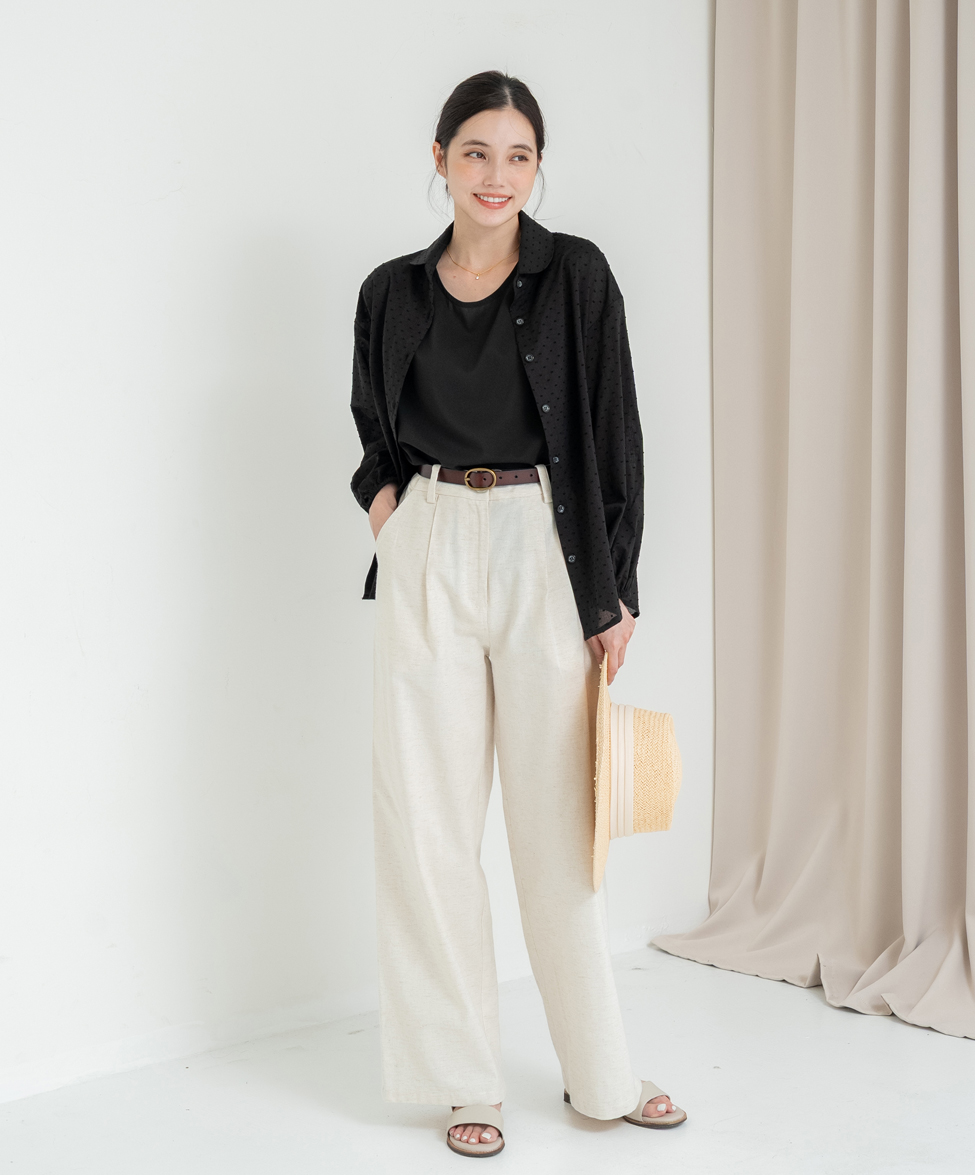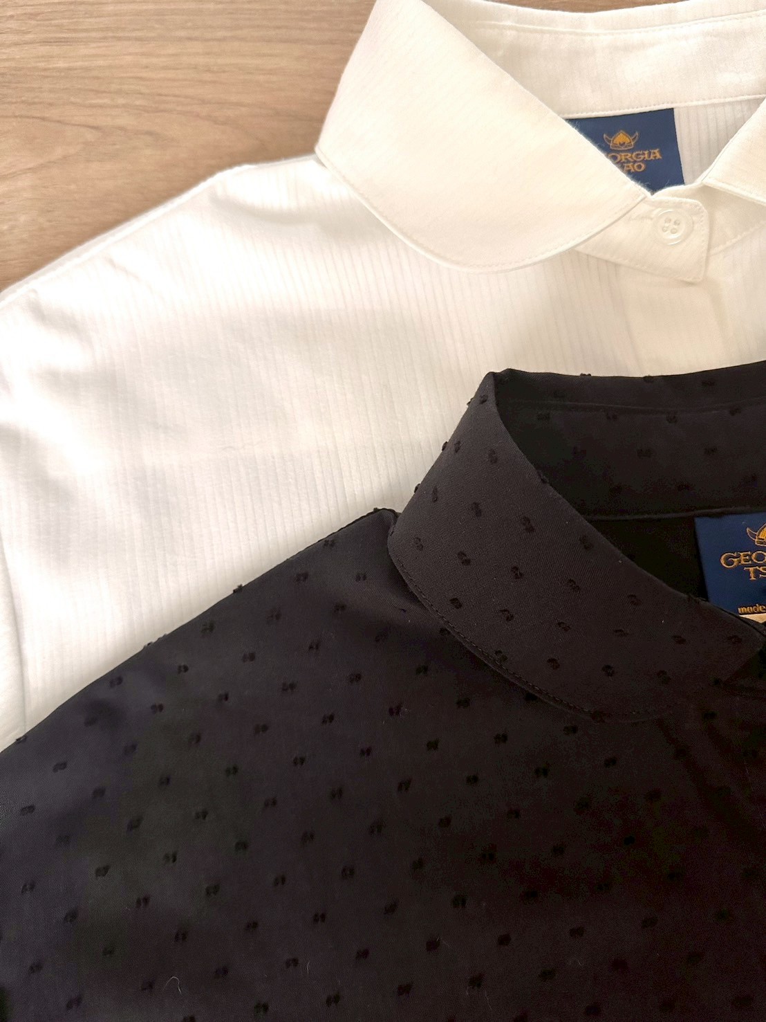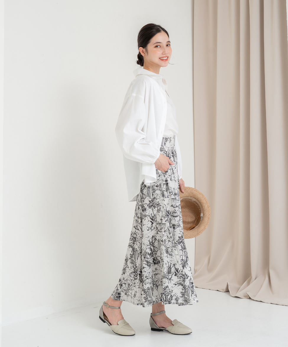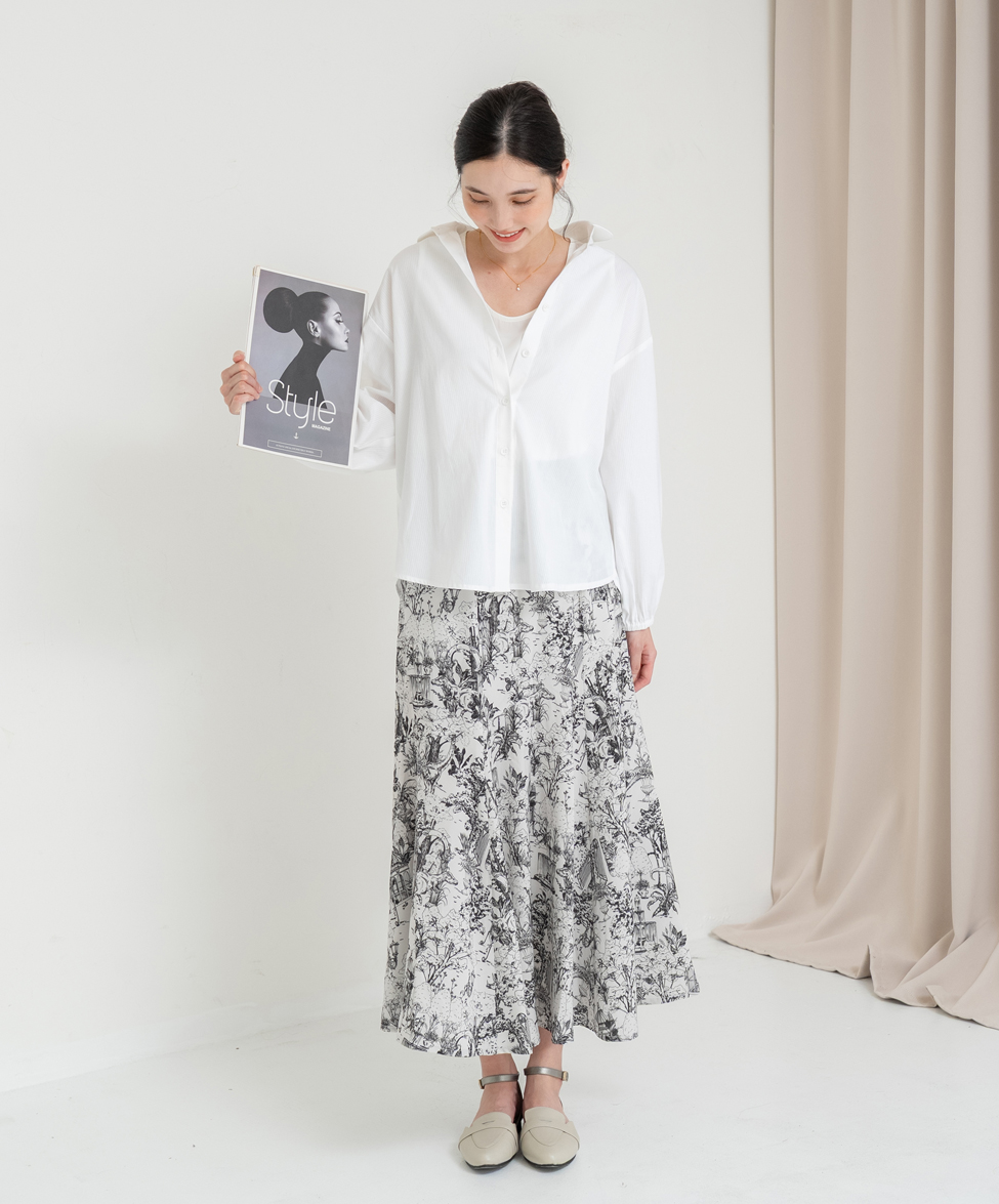 【版型介紹】 整體版型以微寬鬆輪廓為主利用後背中摺設計修飾肩背線條,讓上身線條更顯柔順自然小圓領剪裁微微收口,貼合頸部線條肩線略落肩搭配澎袖造型,營造輕鬆柔和的份量感下擺採圓弧下擺設計,前短後長的長度可自由內紮或放出修飾身形同時保有輕盈流動的視覺效果Model 穿S號