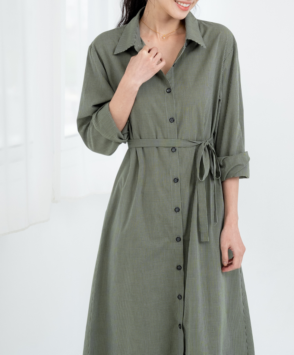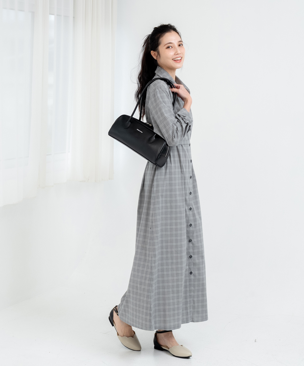 【版型介紹】尖領襯杉的上身,俐落又修飾肩榜的設計是內縮的肩線加上不誇張的微微澎袖讓上衣更有造型感,但又不顯壯高腰腰線讓身材比例更好腰側有隱形拉鍊,穿脫方便洋裝有繫帶,繫起來更顯腰身Model Sheanna 穿S