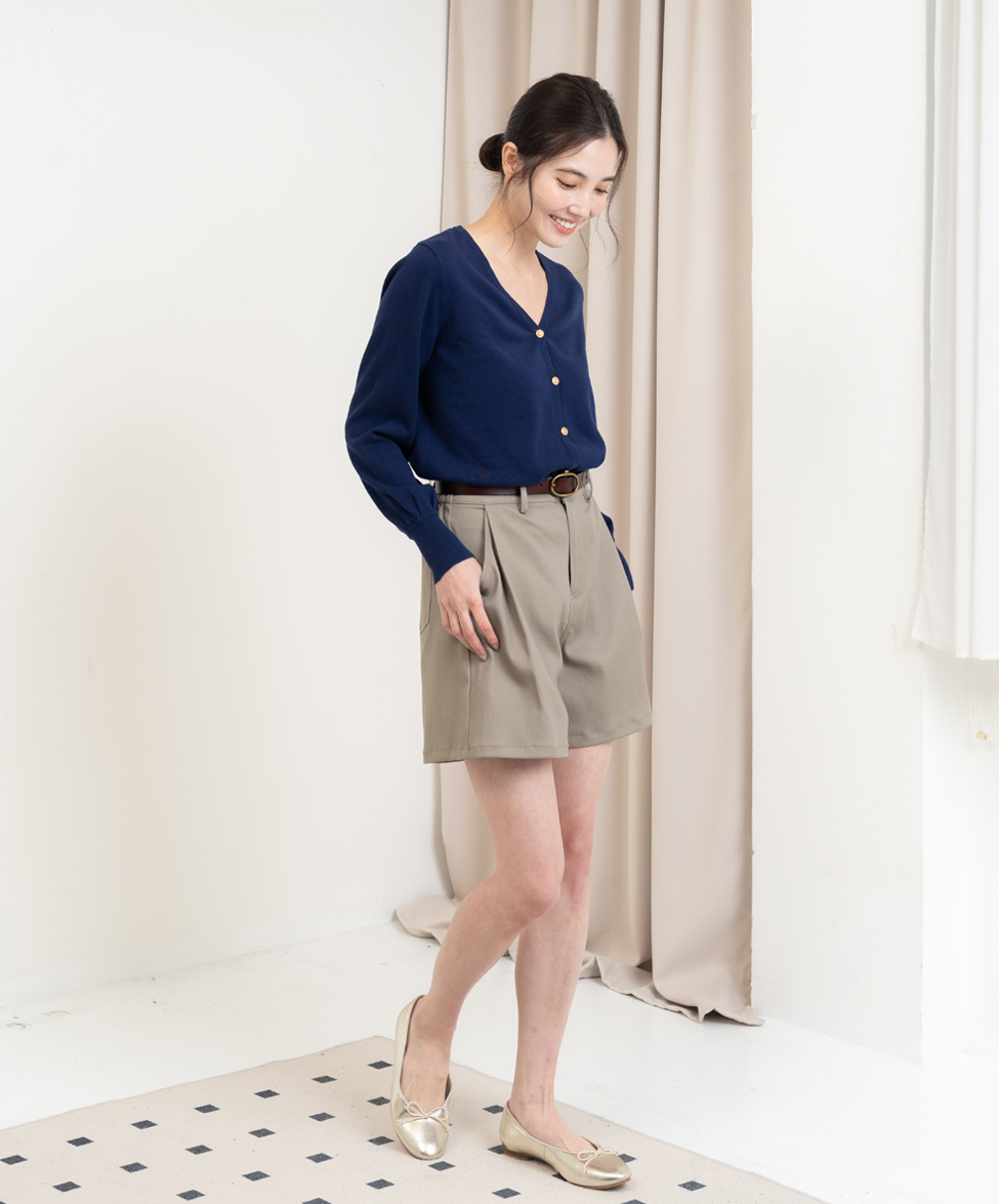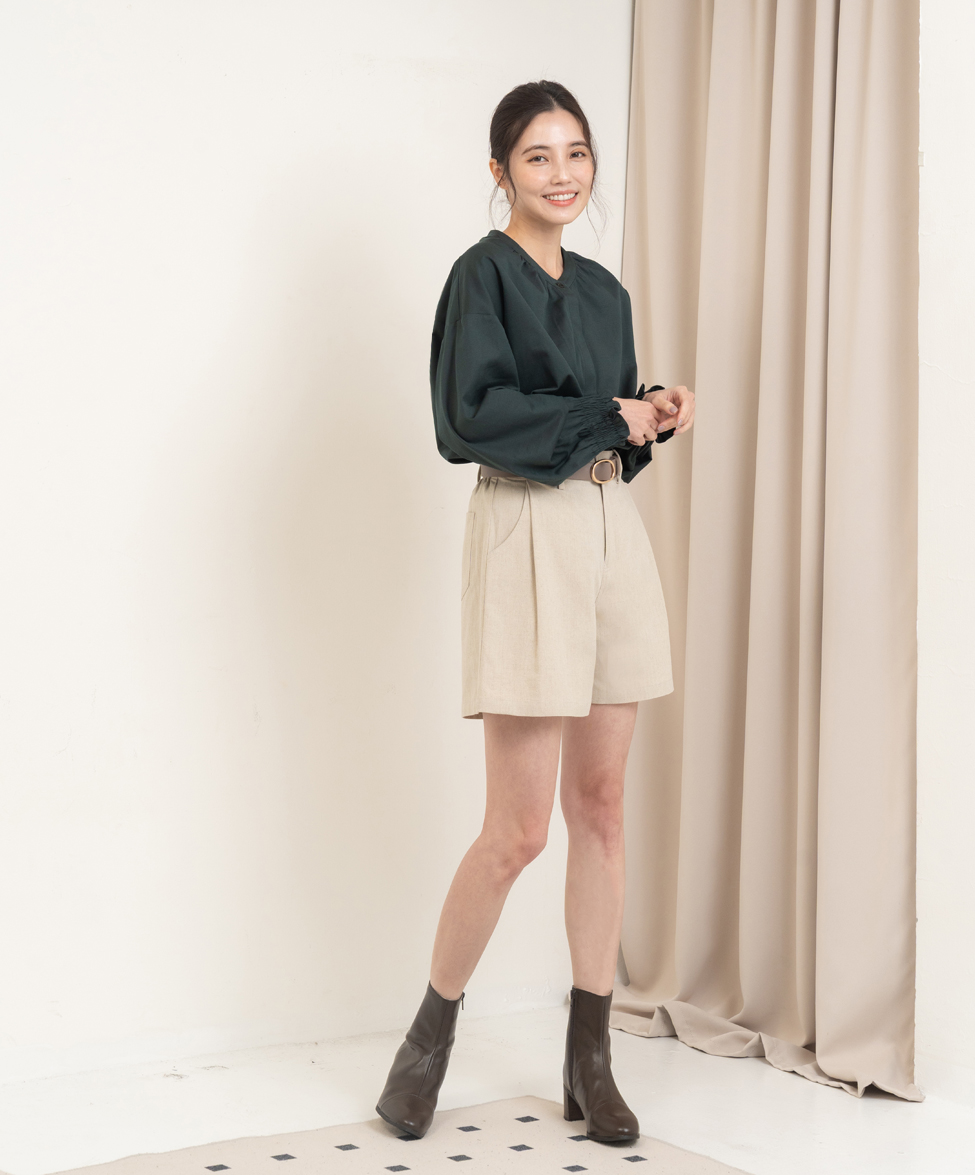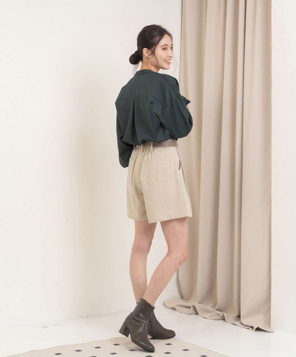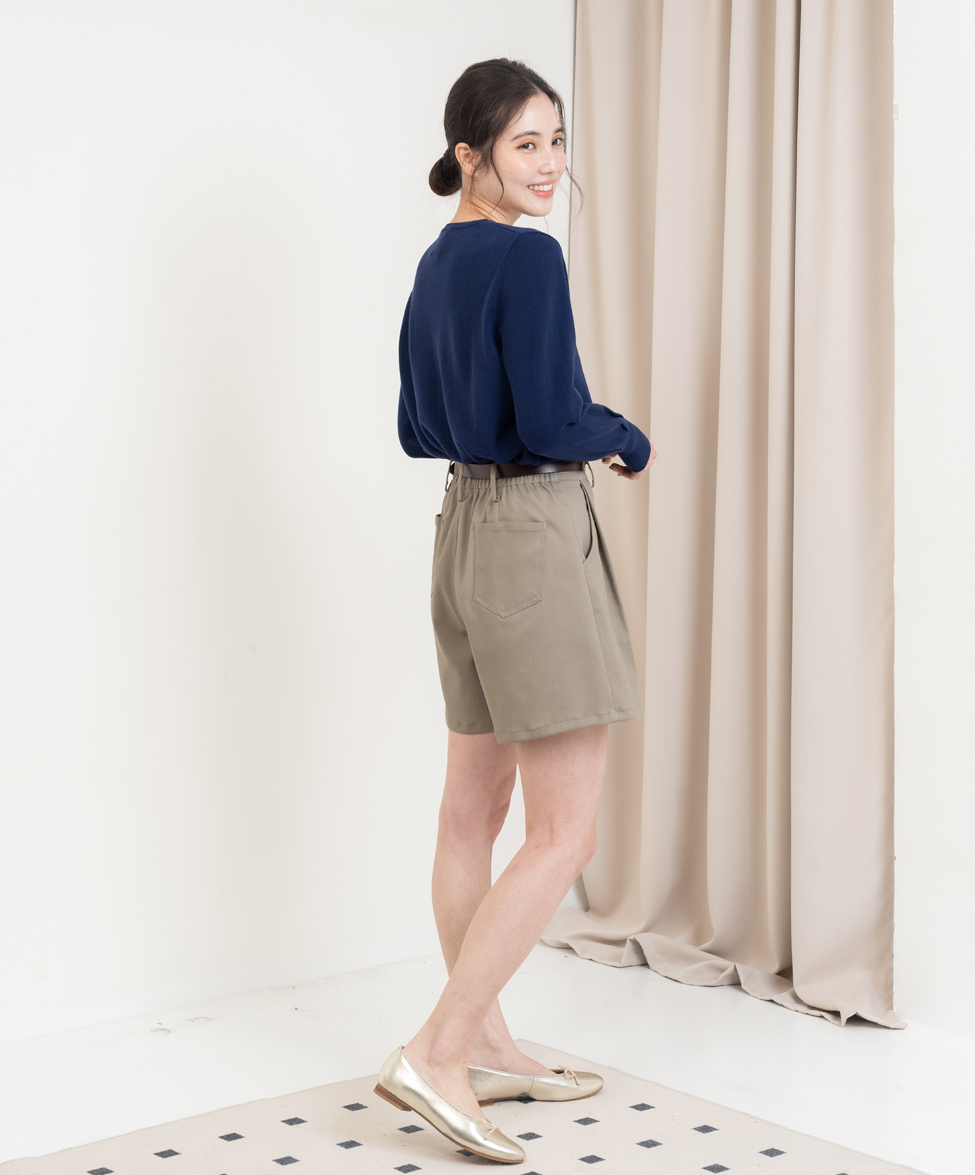 【版型說明】新版型短褲有些許厚度加上彈性的布料,適合初秋穿著