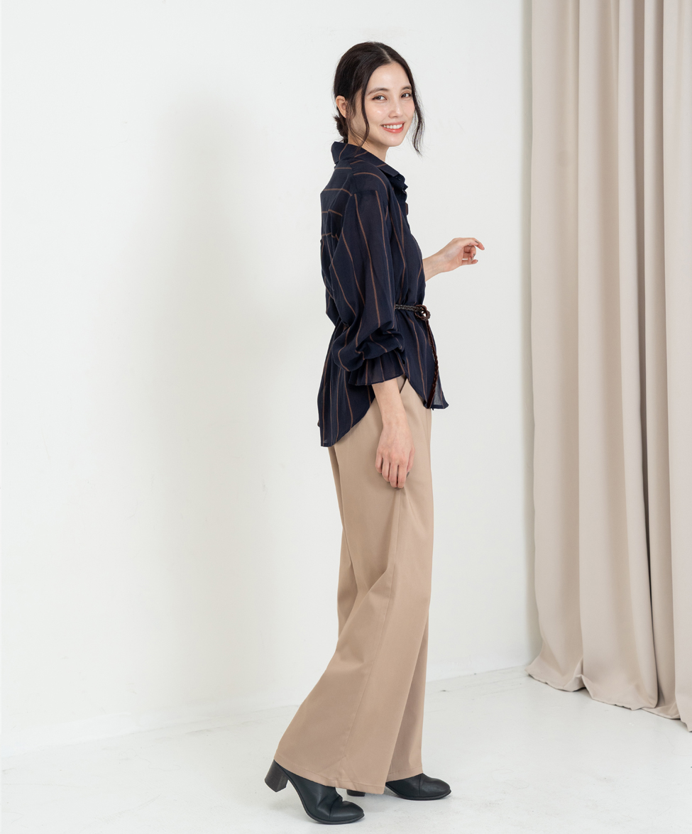 【版型說明】寬鬆剪裁巧妙修飾腿型無論日常外出或居家休閒都能輕鬆駕馭後腰鬆緊設計,彈性貼合各種身形穿脫方便、不勒肚,舒適感再升級特別設計的腰帶穿孔,搭配皮帶或絲巾,為整體造型增添層次感從慵懶隨性到優雅簡約,各種穿搭風格都適合Model Sheanna 穿S