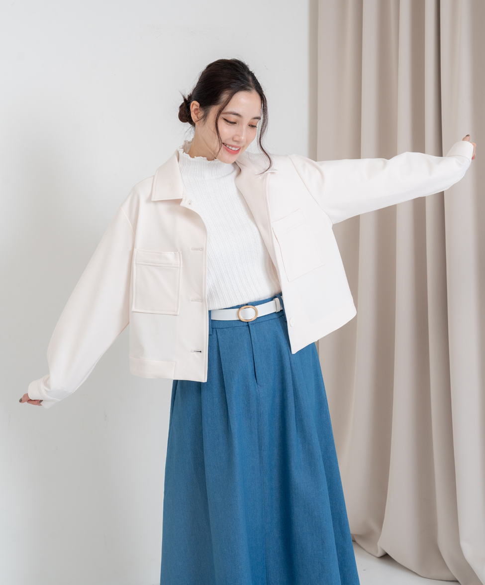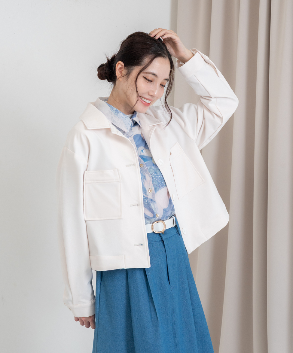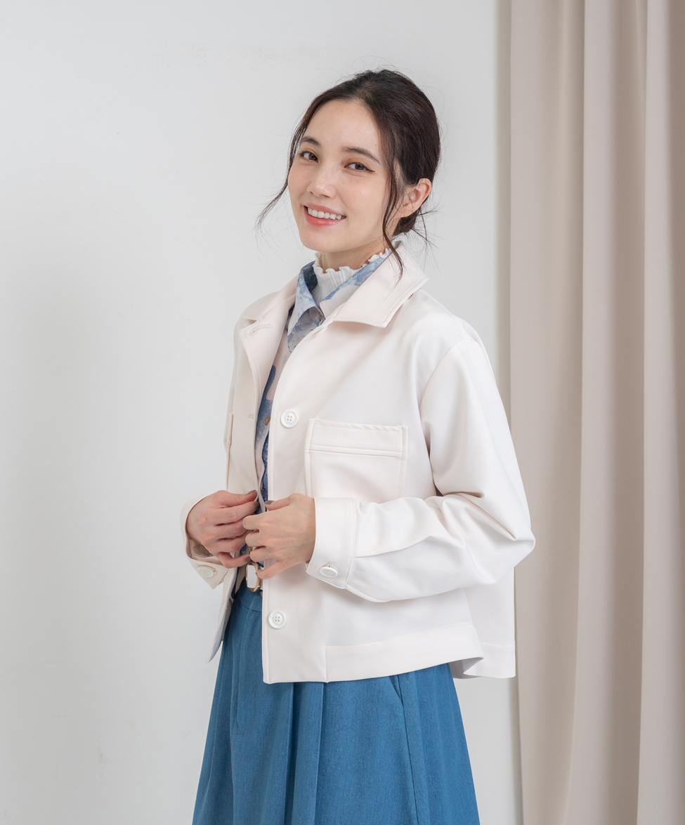 【版型介紹】 落肩設計的短版襯衫夾克釦子不釦就是夾克外套 全釦當作短襯衫上衣落肩設計適合各種身形穿著搭配GT洋裝、圓裙或寬褲都好俐落好好看此批布料較之前的短版襯衫夾克微微厚些可休閒也可正式穿著