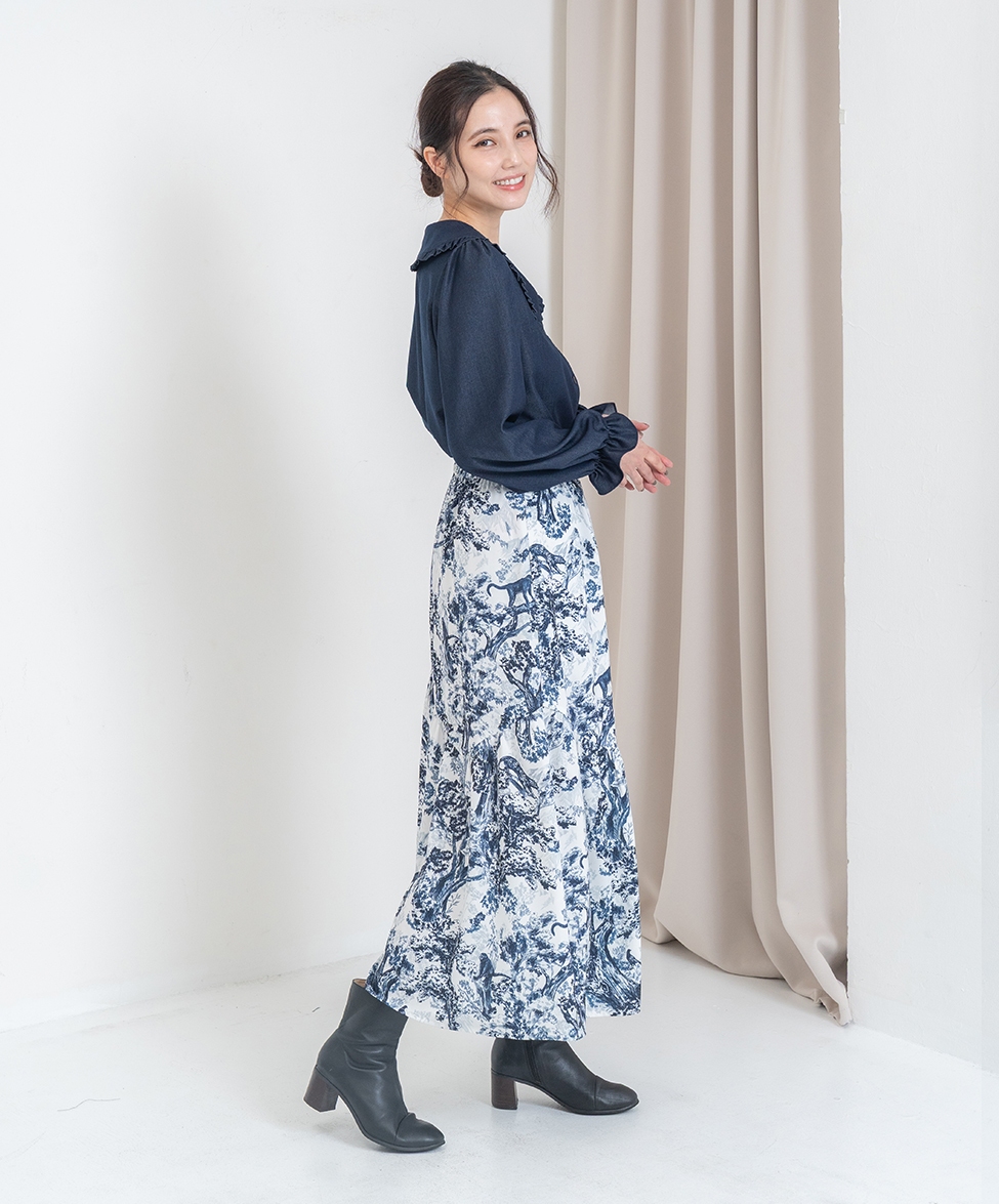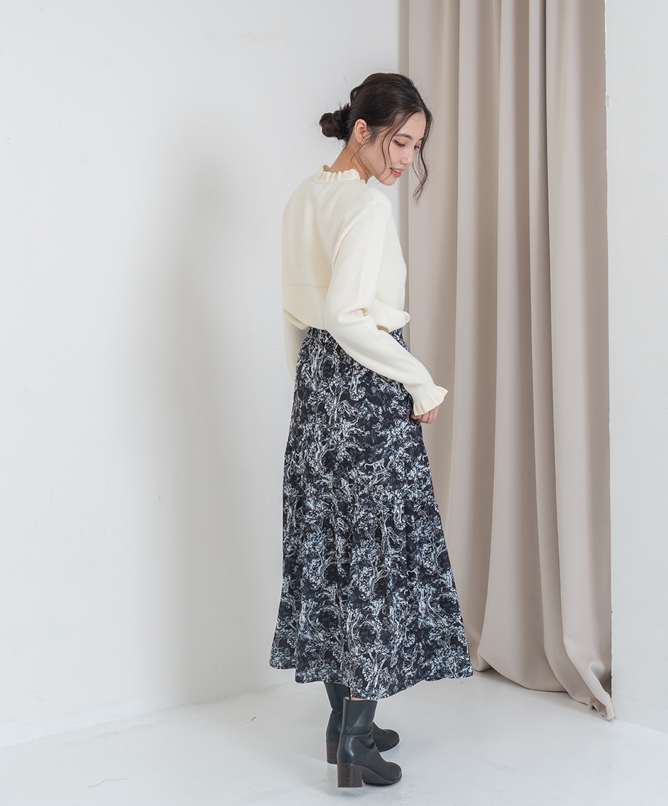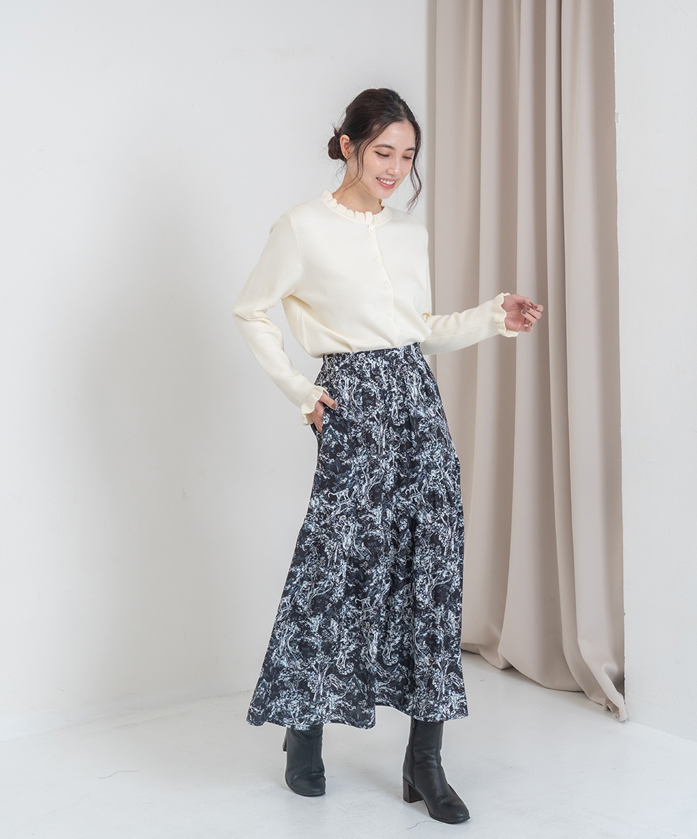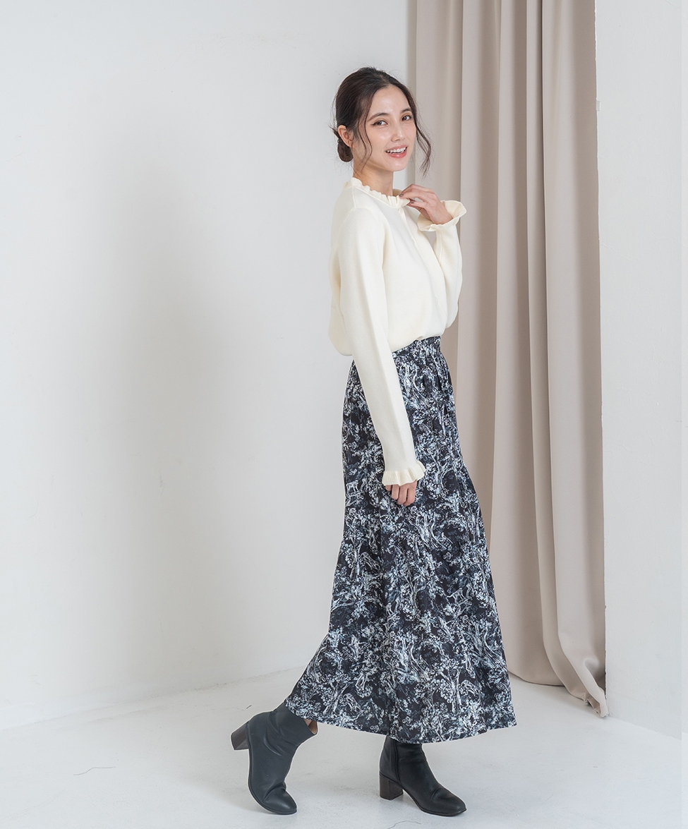 【版型說明】高腰設計修飾腰線,拉長整體比例斜切V字車線抓皺剪裁,行走間自然垂墜,裙長落在小腿至腳踝間,適合日常穿搭也能輕鬆駕馭正式場合。Model 穿S