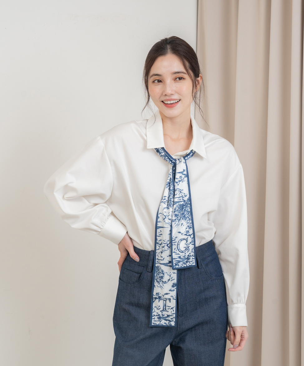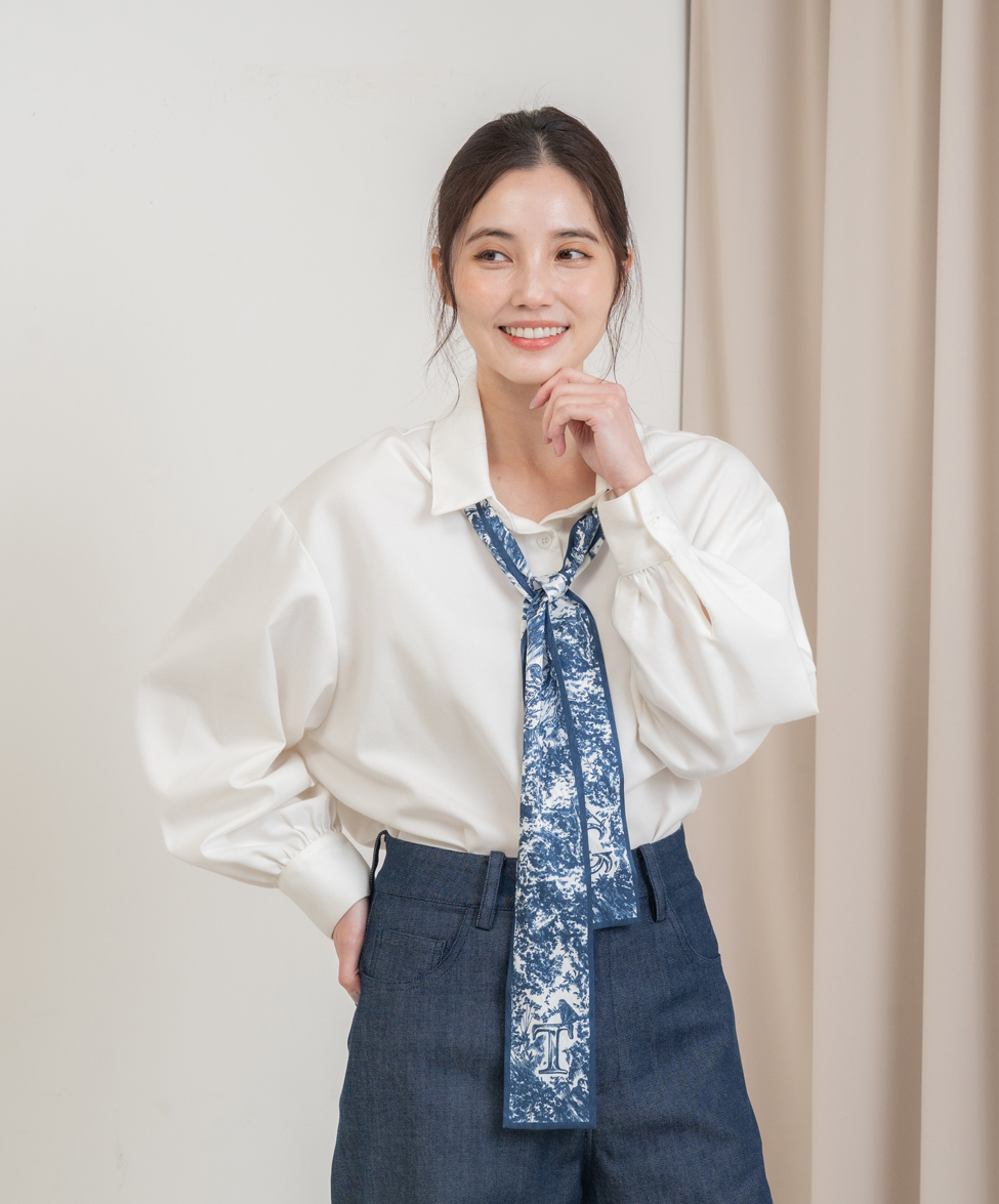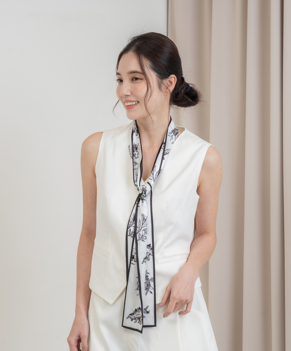 簡約的配色讓絲巾不至於太搶戲,是我們都很愛的低調質感