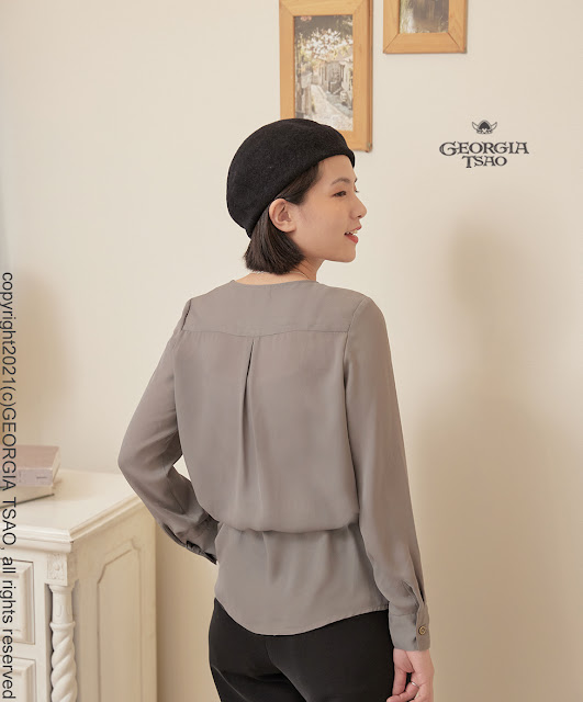上衣的胸兩側立體胸線,修飾身形