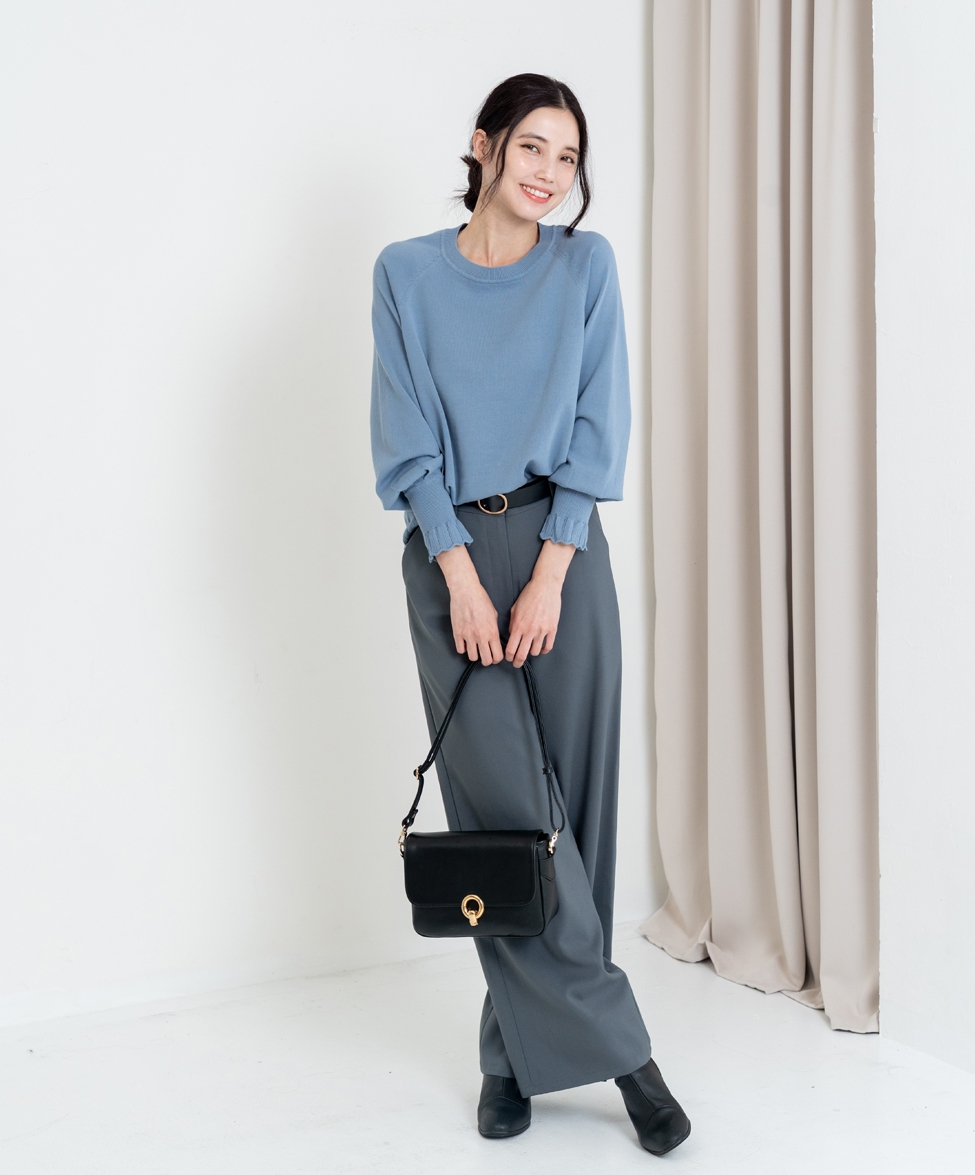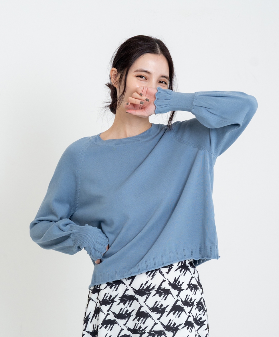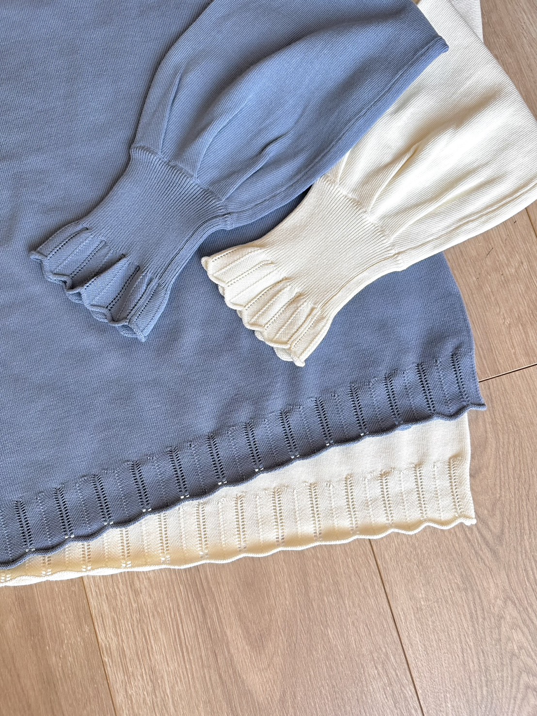 GT 雕花袖圓領針織上衣 天空藍 / F (1入)