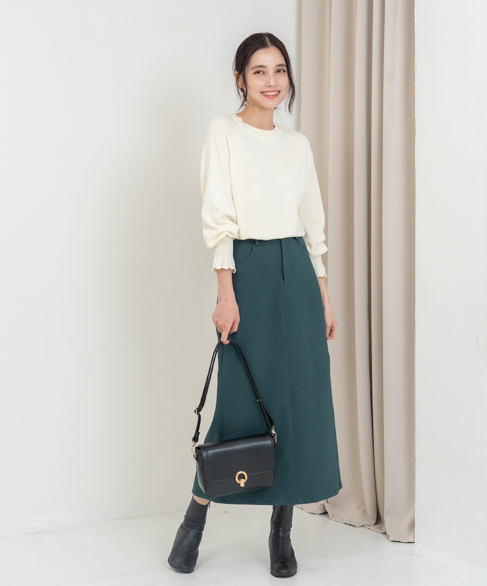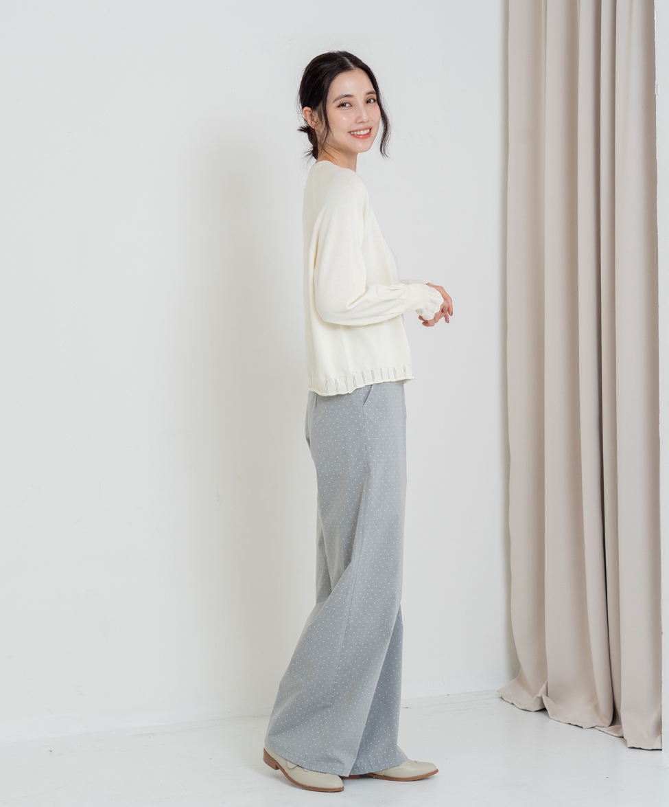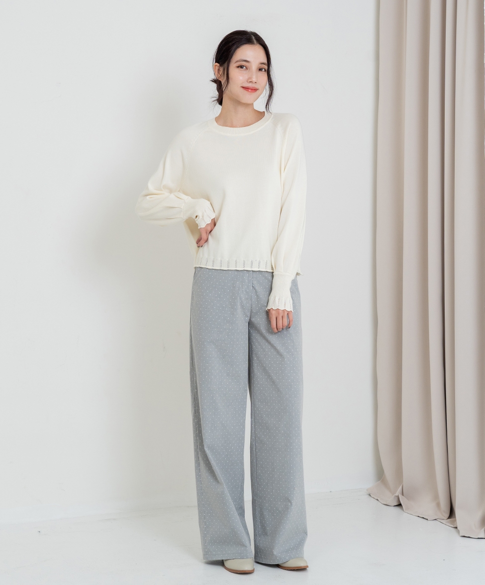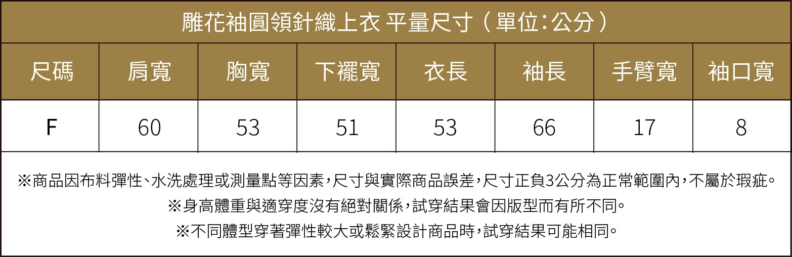 GT 雕花袖圓領針織上衣 米白 / F (1入)