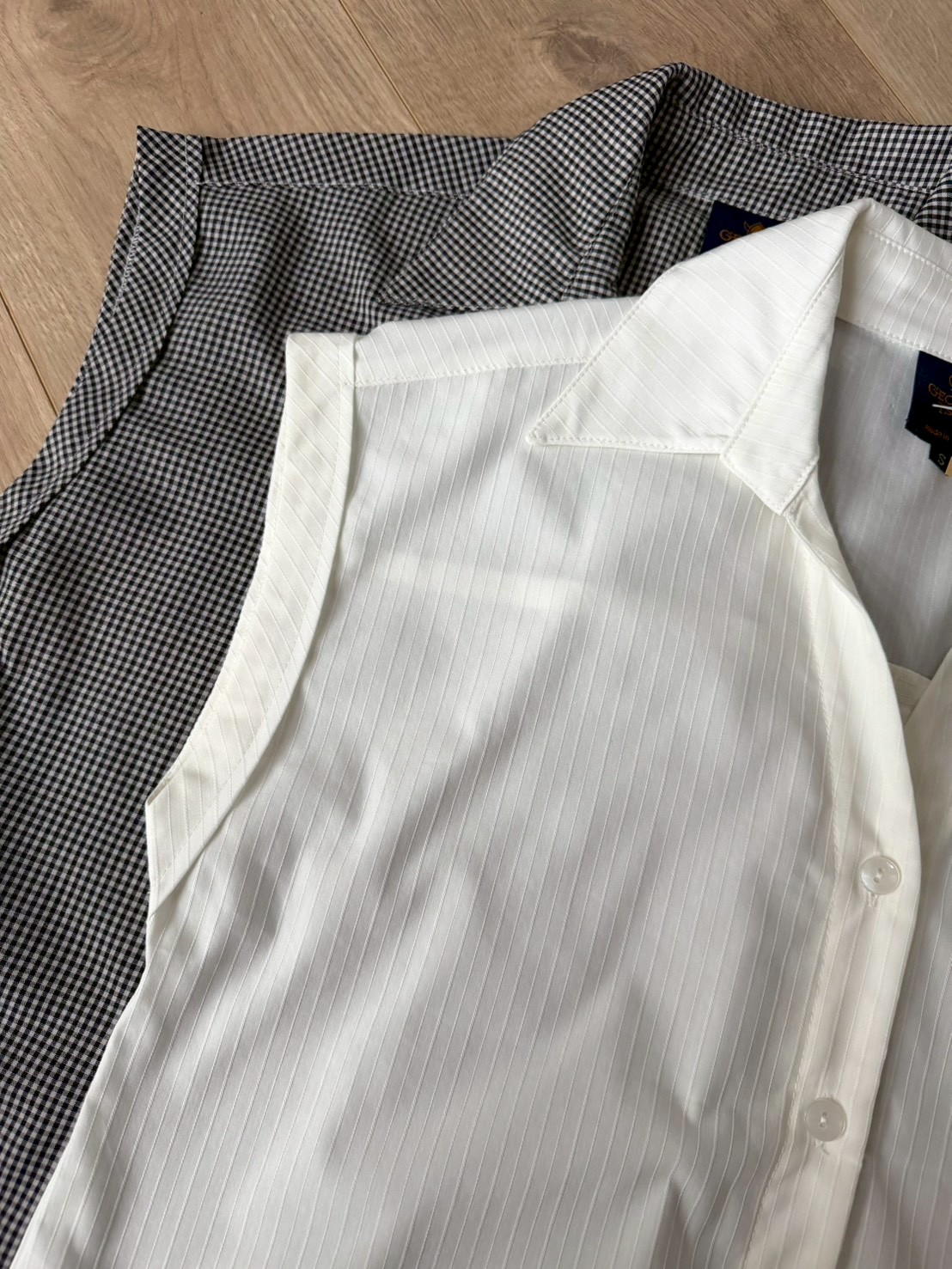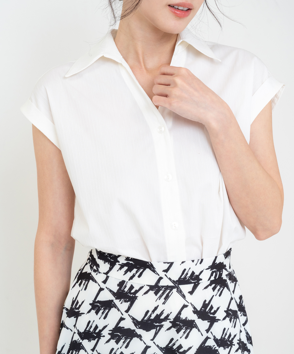 ※ 白色短袖襯衫布料較薄,建議內著膚色系內著。